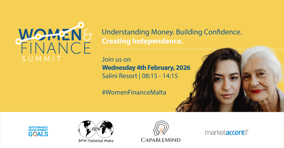 BPW (Valletta) Malta is collaborating with Market Accents and Capable Minds to bring you the Malta Women & Finance Summit 2026. This is a half-day, interactive summit designed to support women in Malta across all life stages to better understand, manage, and take control of their financial lives. Combining plenary discussions, practical workshops, and direct engagement with financial institutions, the Summit creates a safe, informed, and accessible space for women to engage confidently with money — from everyday financial decisions to long-term planning.